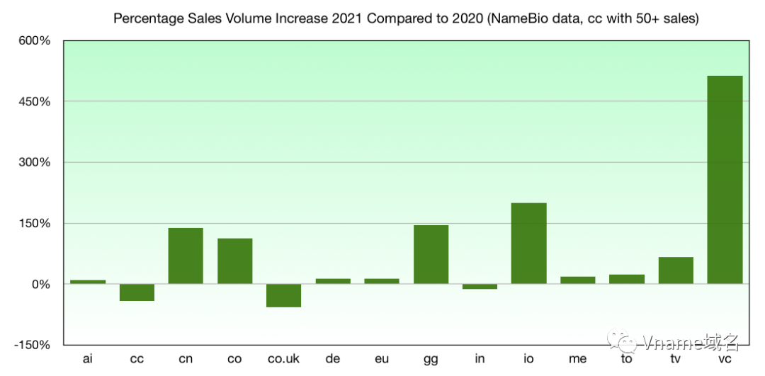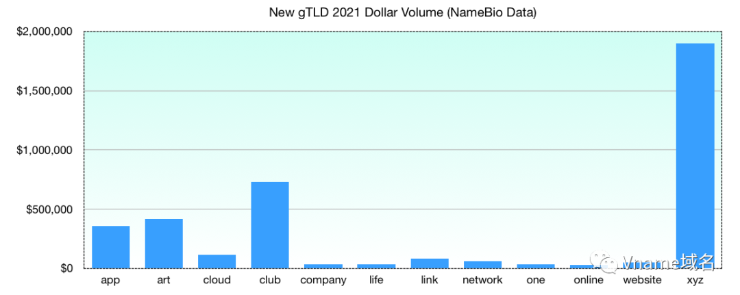 總體而言,新頂級域的銷量從2020年的1046筆增長到2021年的2555筆,銷售額增長了119%,至2021年約510萬美元。