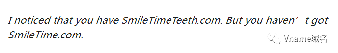很顯然,對于牙科品牌SmileTim來說,最為契合的品牌域名非SmileTime.com莫屬,目前該公司使用的SmileTimeTeeth.com雖然對應了品牌,但字符冗長,不易于記憶和傳播。并且不及時保護好品牌相關域名,對于該公司的未來發展將一直存在隱患。