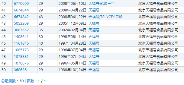 從了解到的信息來看,天福號食品有限公司是“天福號”商標的注冊人,該商標在1993年被認定為“中華老字號”;2009年9月26日,北京天福號食品有限公司還注冊了品牌三拼域名tianfuhao.com.cn。