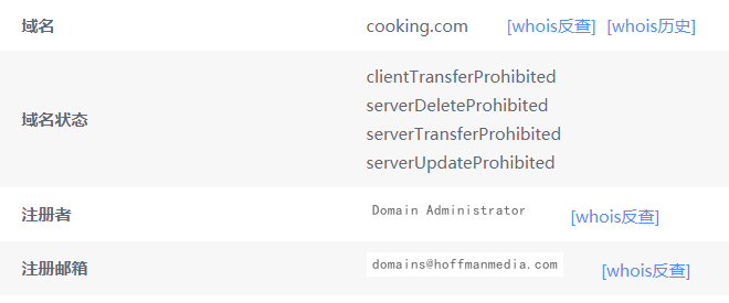 查詢發現,霍夫曼公司名下除了Cooking.com之外,還持有Cooking.net/.org以及cook.net、ecooking.com等相關域名。